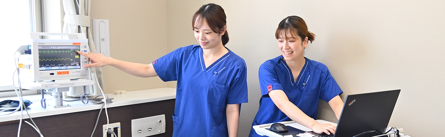 看護体制 セル看護提供方式日勤のスケジュール 8:30 情報収集・準備 ・環境整備 ・今日の予定や報告事項の伝達 ・患者さんの情報収集、薬や点滴の準備 9:00 患者ラウンド ・患者状態観察 ・担当患者さんに挨拶 ・清潔ケア、点滴 ・バイタルサイン測定 ・カルテ記載 11:30 昼休憩 ・11:30から交代で1時間 ・職員食堂でランチタイム 12:00 食事の準備・介助 ・配膳、下膳 ・食事介助、配薬 ・口腔ケア 13:00 患者ラウンド ・患者状態観察 ・カルテ記載 15:00 クリーンタイム / カンファレンス ・環境整備 ・患者さんの情報を共有、計画の変更 17:00 業務終了 交代勤務・シフト制 PAGE TOP WEB 申込み 病院見学 オープン ホスピタル Instagram お問合せ 看護部概要 看護部 認定看護師 看護実践 データで見る看護部 教育体制 教育方針等 教育システム 教育プログラム 新人看護師研修 IVナース制度 イベント 病院見学 インターンシップ等 福利厚生 採用情報 アクセス お問合せ