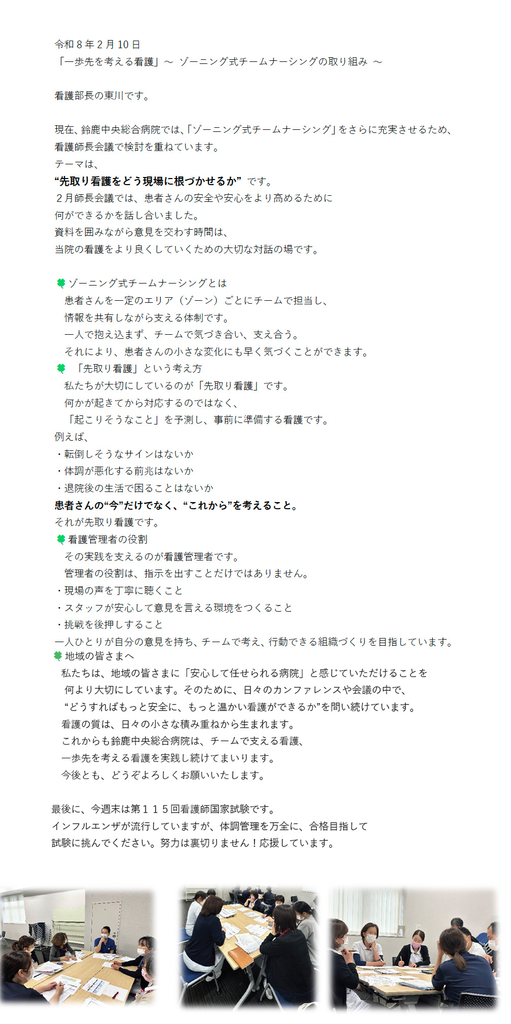 「一歩先を考える看護」